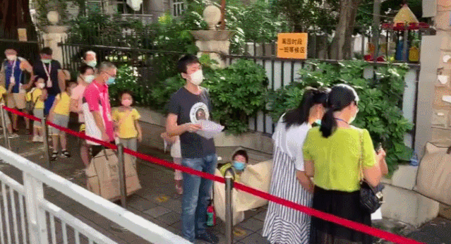 已有家長帶著孩子等待入園