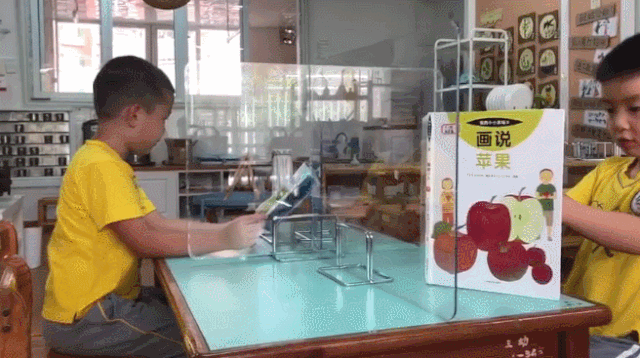 同時,園內(nèi)教室桌上設(shè)置了擋板,