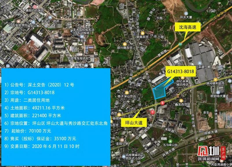 坪山G14313-8018宗地位于坪山區(qū)坪山大道與秀沙路交匯處東北角,土地用途為二類居住用地,起始價(jià)為7.01億元,土地面積為4.92萬平方米,建筑面積為22.14萬平方米。其建設(shè)住宅類型為出售的人才住房和出售的安居型商品房,其中出售的人才住房建筑面積為7.13萬平方米,出售的安居型商品房建筑面積為13.25萬平方米。項(xiàng)目建成后,宗地出售的人才住房銷售基準(zhǔn)售價(jià)不高于1.98萬元/平方米,最高售價(jià)不高于2.08萬元/平方米;安居型商品房基準(zhǔn)售價(jià)不高于1.65萬元/平方米,最高售價(jià)不高于1.73萬元/平方米。