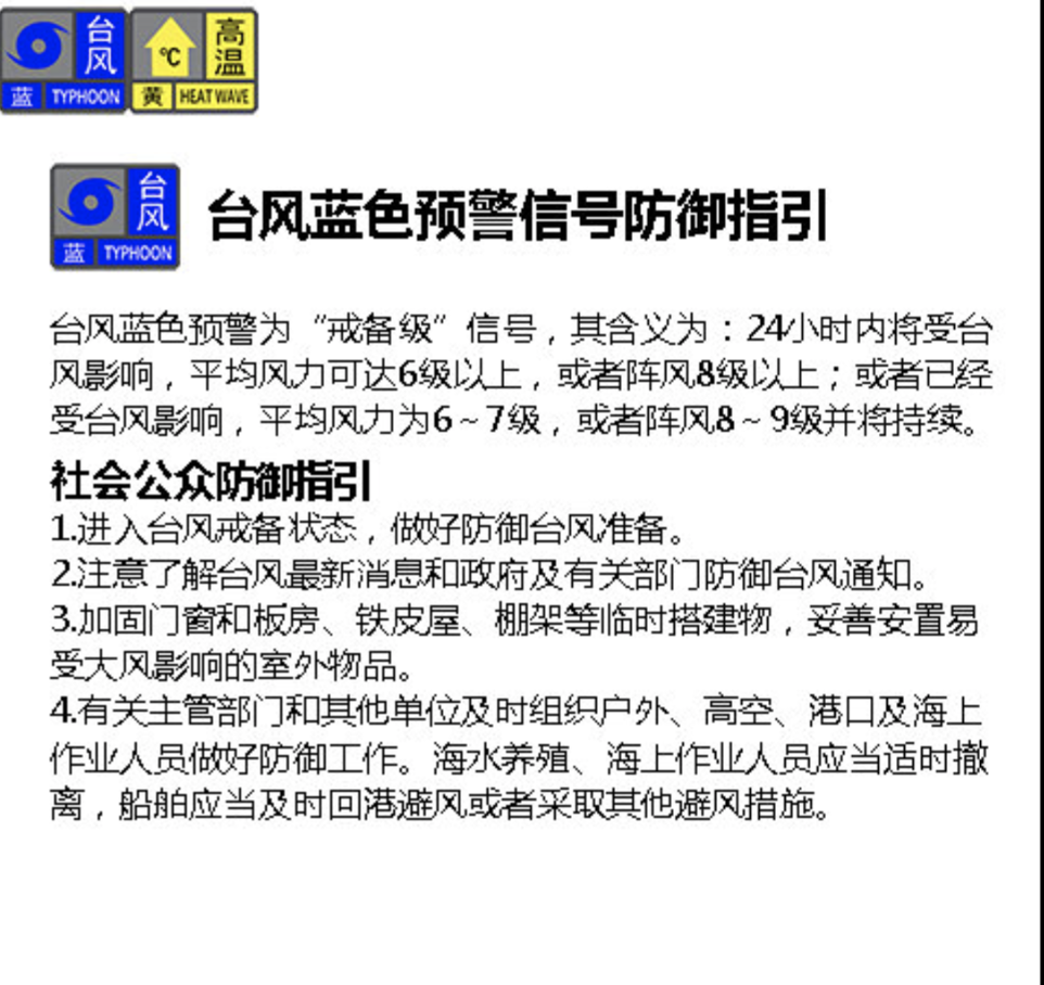 【臺風藍色、海浪藍色和雷電預警信號生效中】