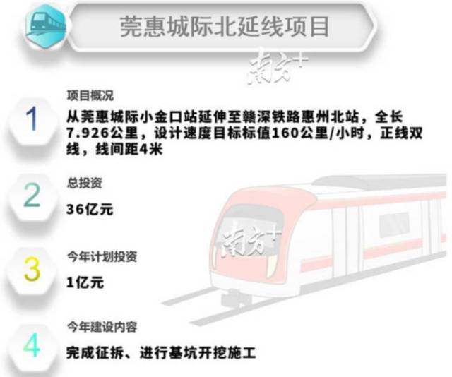 南方日報、南方+記者留意到,前不久,惠州市發(fā)改局在《惠州市2020年重點建設項目計劃》中,已經(jīng)把莞惠城際北延線項目列為今年新開工項目。該線路設計速度目標標值160公里/小時,正線雙線,線間距4米。