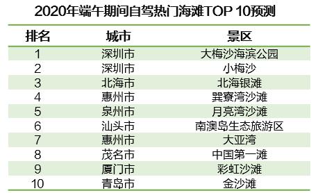 《報(bào)告》預(yù)計(jì),端午期間全國(guó)自駕熱門(mén)海灘游TOP10主要集中在南部沿海地區(qū),其中珠三角占6席。熱門(mén)海灘游中的深圳-大梅沙海濱公園、小梅沙以及北海-北海銀灘,成為全國(guó)自駕熱門(mén)海灘景區(qū)三甲。