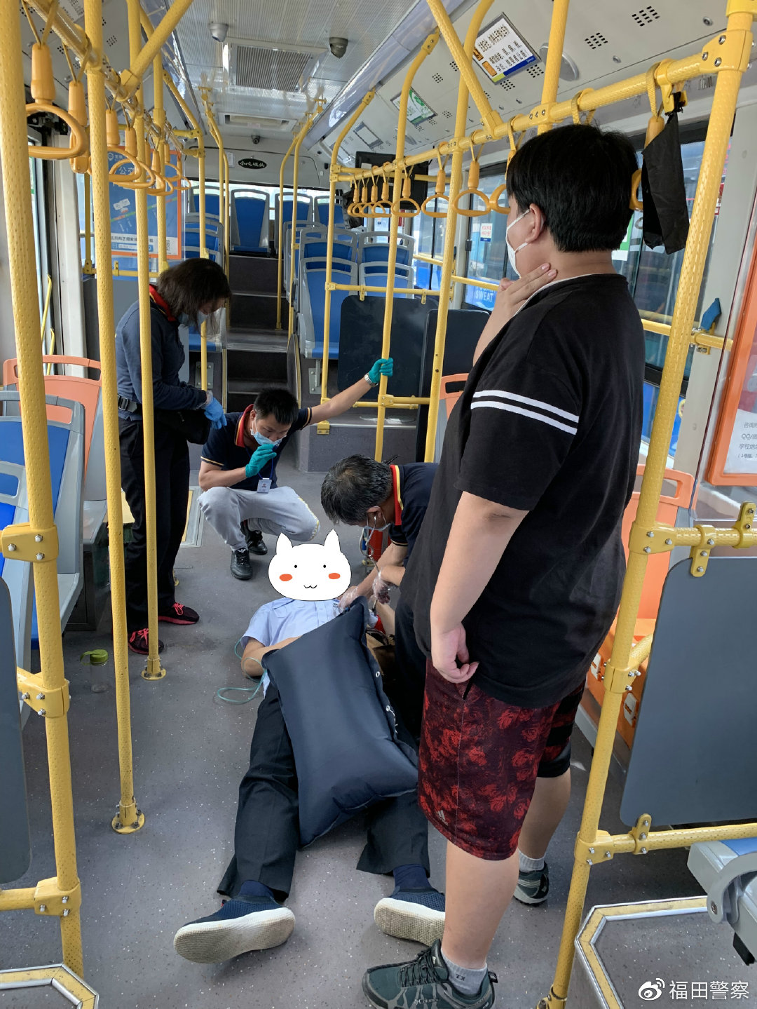民警協(xié)助醫(yī)護(hù)人員救助公交車司機(jī)