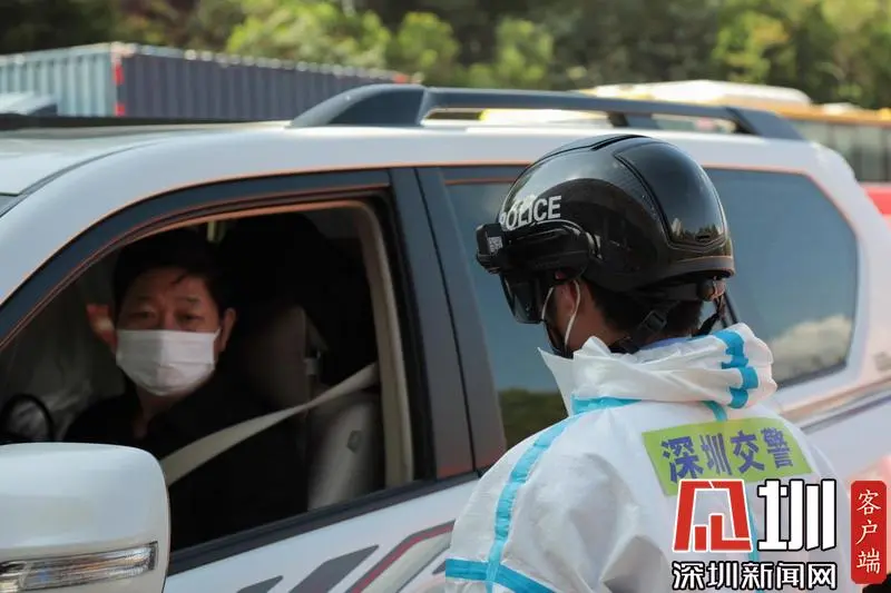 ▲5G機器人義警“黃田田”提醒回深車輛掃碼登記。