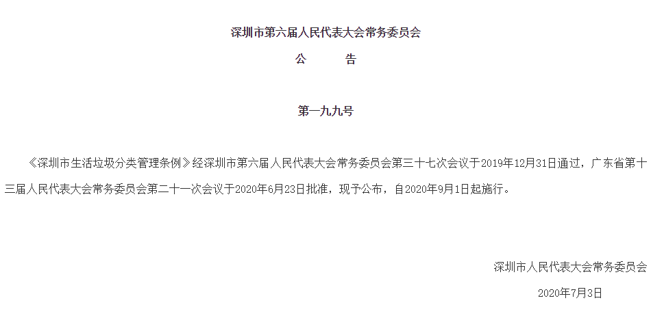 見圳客戶端·深圳新聞網(wǎng)2020年7月4日訊(見圳客戶端、深圳新聞網(wǎng)記者 葉梅)記者從深圳市人大常委會官方網(wǎng)站獲悉,《深圳市生活垃圾分類管理條例》(以下簡稱《條例》)經(jīng)深圳市第六屆人民代表大會常務委員會第三十七次會議于2019年12月31日通過,廣東省第十三屆人民代表大會常務委員會第二十一次會議于2020年6月23日批準,將于2020年9月1日起施行,從垃圾分類投放、收集運輸處理、源頭減量和循環(huán)利用等方面提出了明確要求。