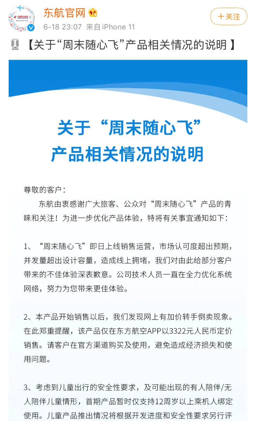 在官方微博,東航就“隨心飛”產(chǎn)品發(fā)表了一個(gè)說(shuō)明,對(duì)用戶(hù)出現(xiàn)不好的體驗(yàn)致歉,并稱(chēng)技術(shù)人員正在全力優(yōu)化系統(tǒng)網(wǎng)絡(luò),努力給用戶(hù)帶來(lái)好的體驗(yàn)。
