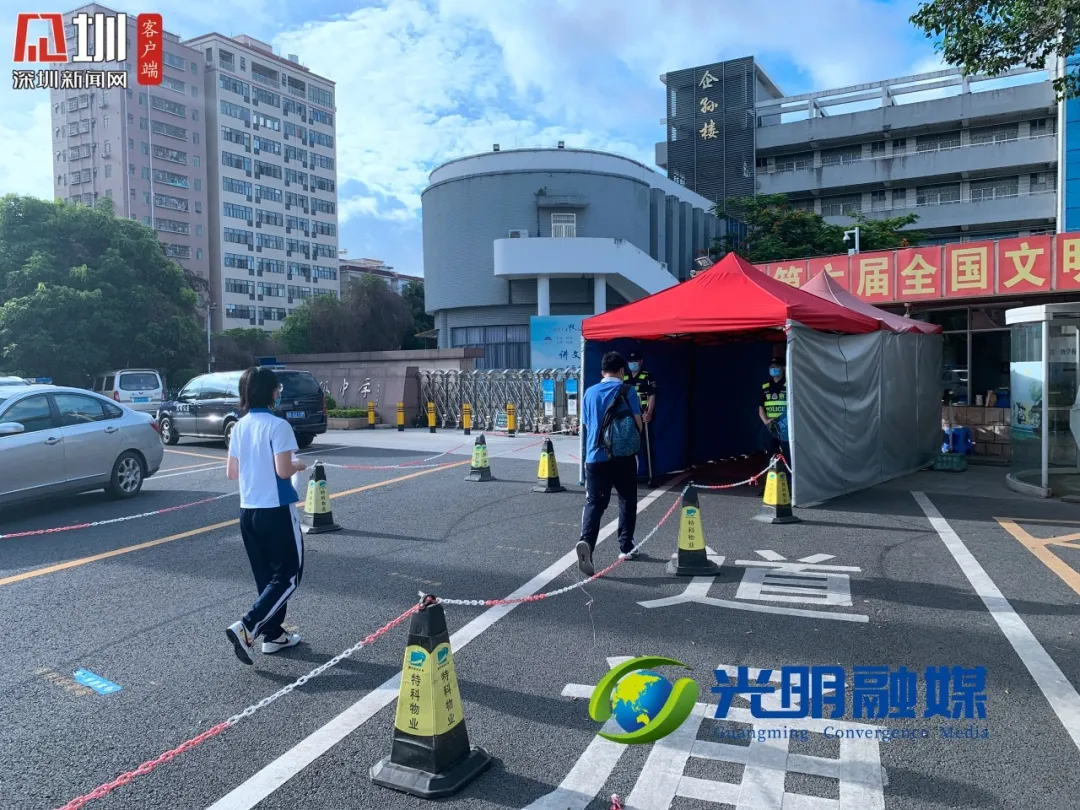 早上七點(diǎn)十五分,記者來到光明區(qū)高級中學(xué)考點(diǎn),學(xué)生已經(jīng)開始有序走入考場。