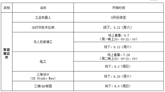 據(jù)悉,智能制造類、信息技術(shù)類課程7月9日開始報名,企業(yè)管理類、社會服務(wù)類、創(chuàng)業(yè)項目類7月10日開始報名,報名時間截止到7月底。