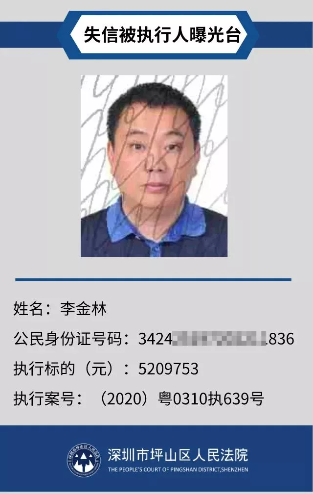 為督促被執(zhí)行人自覺履行生效法律文書確定的義務(wù),推進社會誠信體系建設(shè),深圳市坪山區(qū)人民法院根據(jù)《中華人民共和國民事訴訟法》第二百五十五條、《最高人民法院公布失信被執(zhí)行人名單信息若干規(guī)定》第一條和第七條之規(guī)定,現(xiàn)對31名失信被執(zhí)行人予以公布。名單信息根據(jù)案件結(jié)案情況及時更新,歡迎舉報失信被執(zhí)行人行蹤及財產(chǎn)線索,相關(guān)信息核實請聯(lián)系深圳市坪山區(qū)人民法院執(zhí)行局。