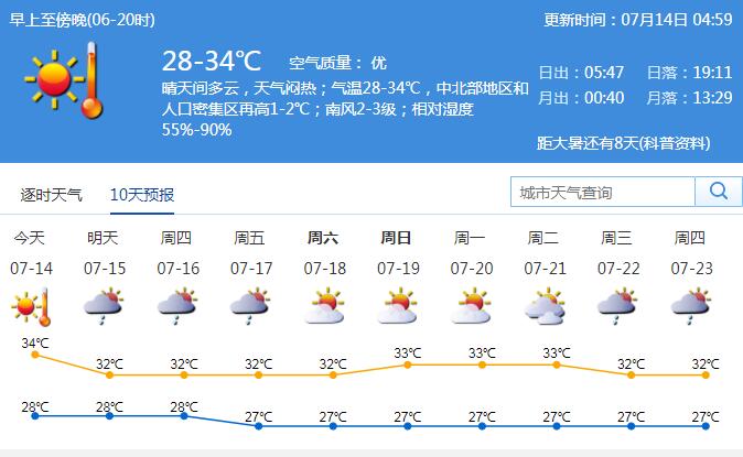 見(jiàn)圳客戶端·深圳新聞網(wǎng)2020年7月14日訊 14日晴天間多云,天氣悶熱;氣溫28-34℃,中北部地區(qū)再高1-2℃;南風(fēng)2-3級(jí);濕度55%-90%。15-17日多云,有短時(shí)(雷)陣雨;18-20日天氣悶熱,局地偶有短時(shí)陣雨。