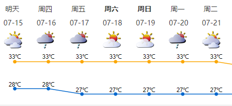預(yù)計15-17日多云,有短時(雷)陣雨;18-20日天氣悶熱,局地偶有短時陣雨。