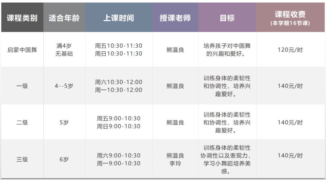 中國舞課程設(shè)置