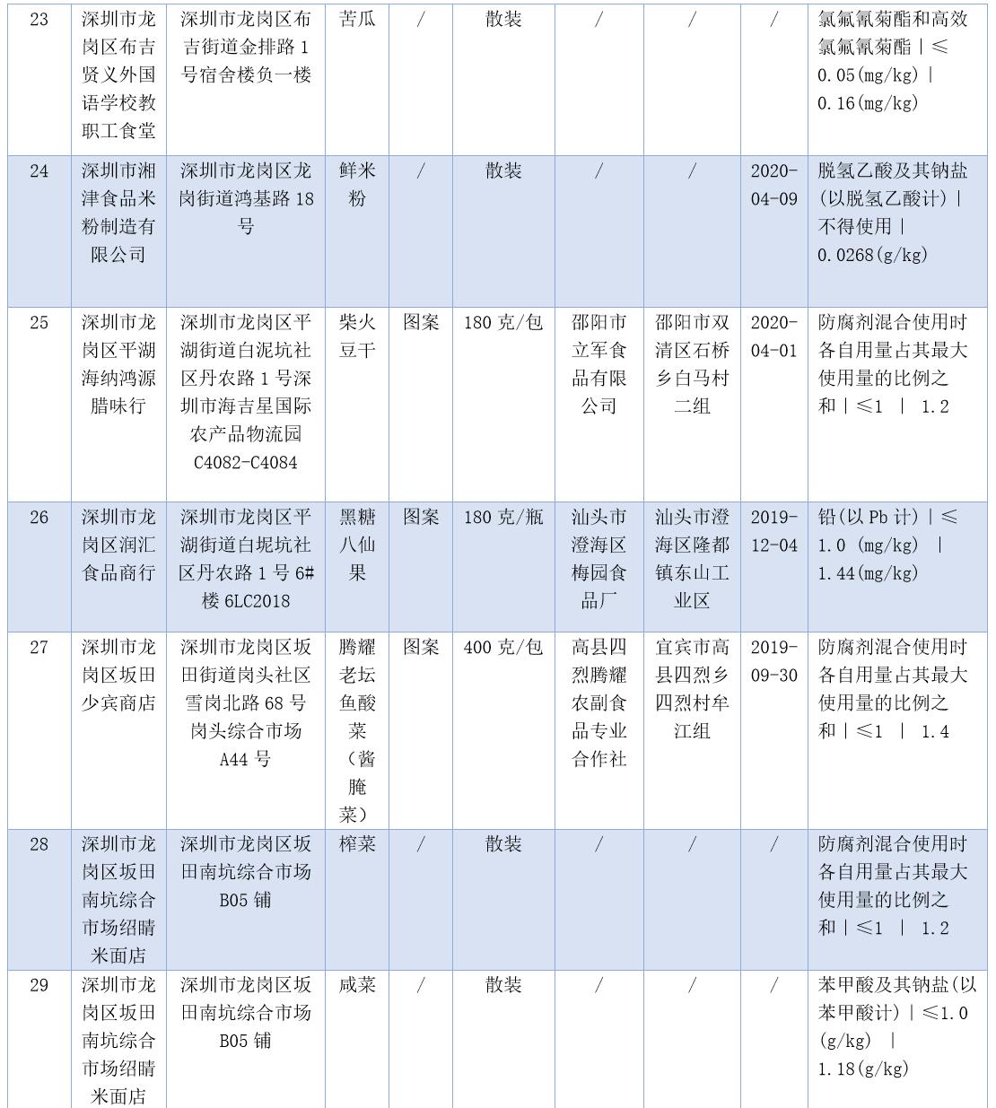 見圳客戶端·深圳新聞網(wǎng)2020年7月17日訊(晶報(bào)記者 鄧裴裴/制圖)7月17日,深圳市市場監(jiān)督管理局官網(wǎng)發(fā)布了2020年第二十二期食品安全抽樣檢驗(yàn)情況通報(bào),3-5月,共抽檢生產(chǎn)、流通、餐飲環(huán)節(jié)食品1229批次,發(fā)現(xiàn)不合格樣品47批次。記者注意到,不少不合格樣品抽檢單位為餐飲店,包括皇軒酒店、窯雞王、愛上牛蛙、御可奶茶等,還有些小吃店、腸粉店、螺獅粉店紛紛上榜。涉及不合格項(xiàng)目類別包括農(nóng)藥殘留、獸藥殘留、食品添加劑、微生物污染、品質(zhì)指標(biāo)、金屬等元素污染物。