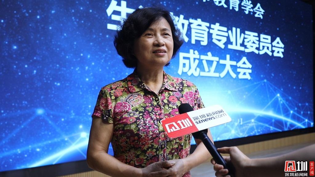 深圳市教育學會會長金依俚接受記者采訪。
