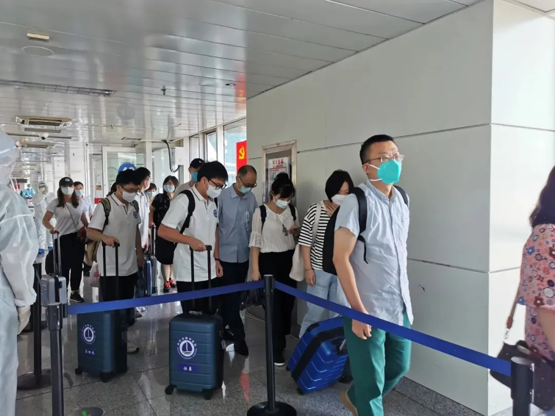 △來(lái)自武漢的核酸檢測(cè)人員抵達(dá)新疆烏魯木齊地窩堡國(guó)際機(jī)場(chǎng)。