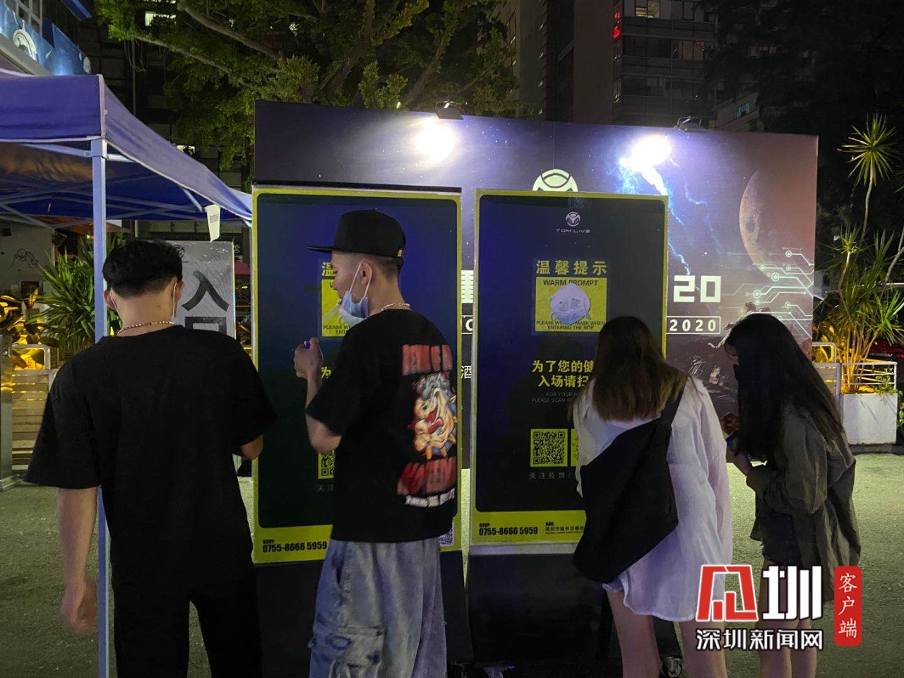 盛夏時節(jié)的夜晚,對于許多年輕人來說,尤其適合“燥起來”。酒吧、KTV、網(wǎng)吧等成為年輕人聚會的熱門場所。晚8點,位于福田車公廟的網(wǎng)紅酒吧TOMLIVE門口就已經(jīng)有許多人排隊。酒吧負責(zé)人告訴直播記者,“酒吧防疫管控措施非常嚴(yán)格,進店消費需掃碼憑碼通過溫控門進入,并且佩戴手環(huán),手環(huán)可作為憑證,出去后再回來則無需重復(fù)掃碼。”疫情期間,消費者都十分注意保持距離,盡量避免聚集。