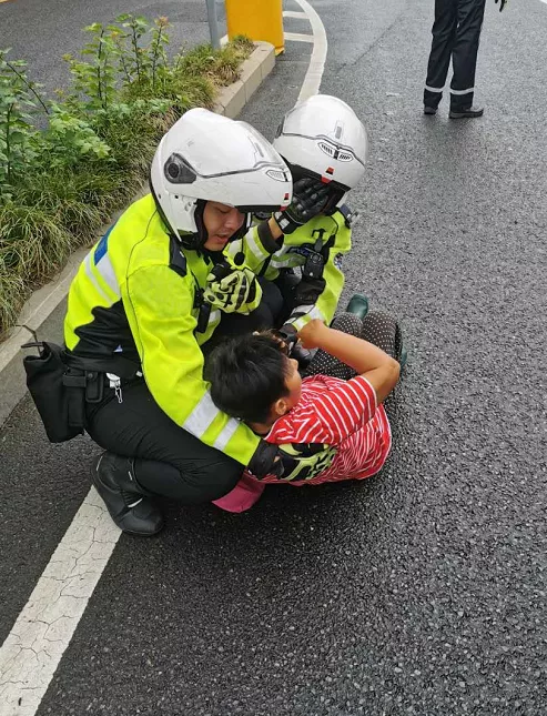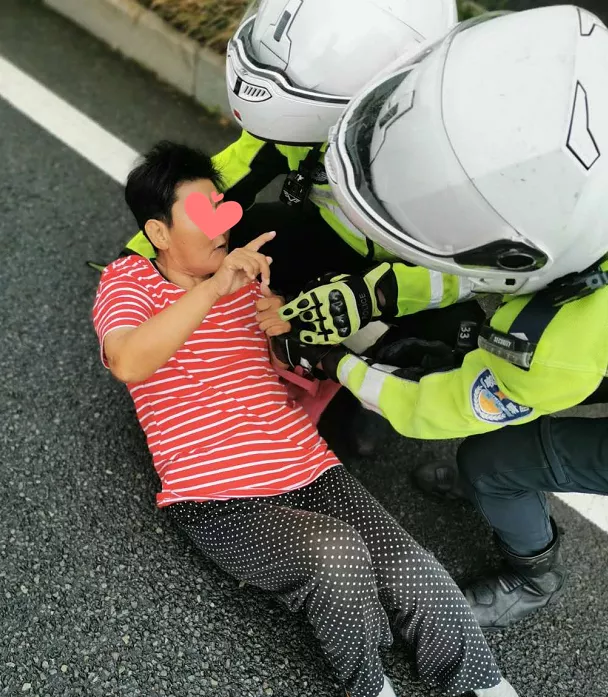8月5日上午,深圳交警鐵騎巡邏至北環(huán)大道西往東方向珍珠嶺天橋路段輔道轉(zhuǎn)主道路口時,發(fā)現(xiàn)一位老太太躺在路中間。