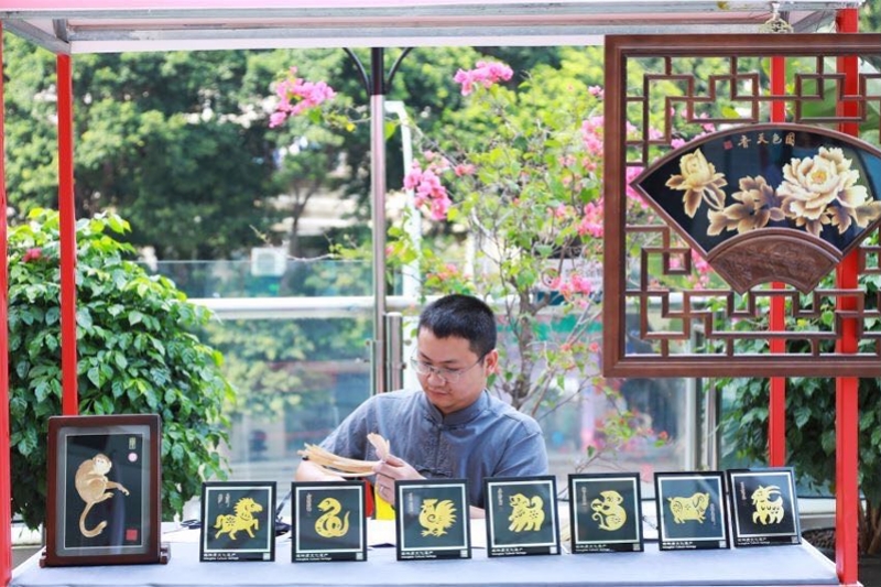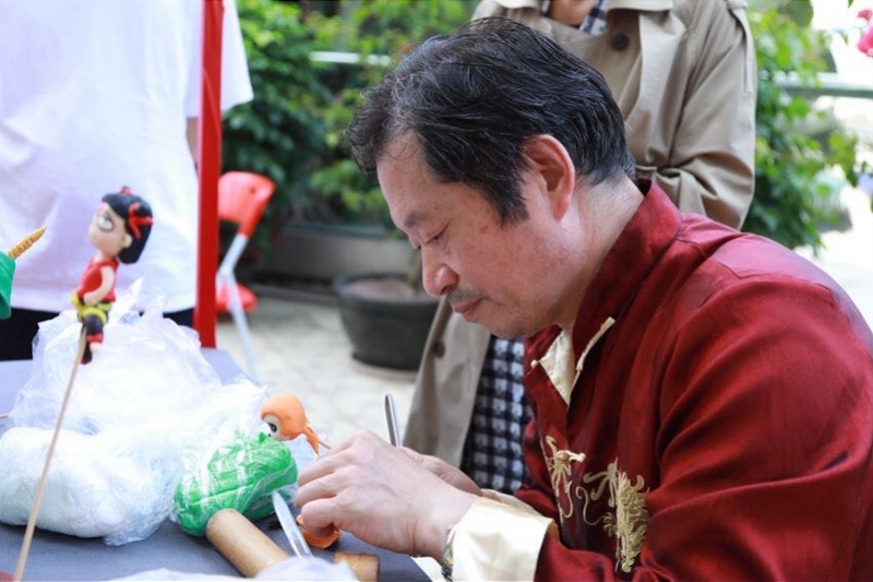 另一方面,活動還設有非遺集市,《王氏面塑》《楊氏中國結》《田氏剪紙》《聶氏麥稈畫》《臉譜面具繪畫》《糖畫》等一批傳統(tǒng)藝術項目傳承人來到現場,亮出“看家本領”制作藝術品,吸引不少市民到場學藝。