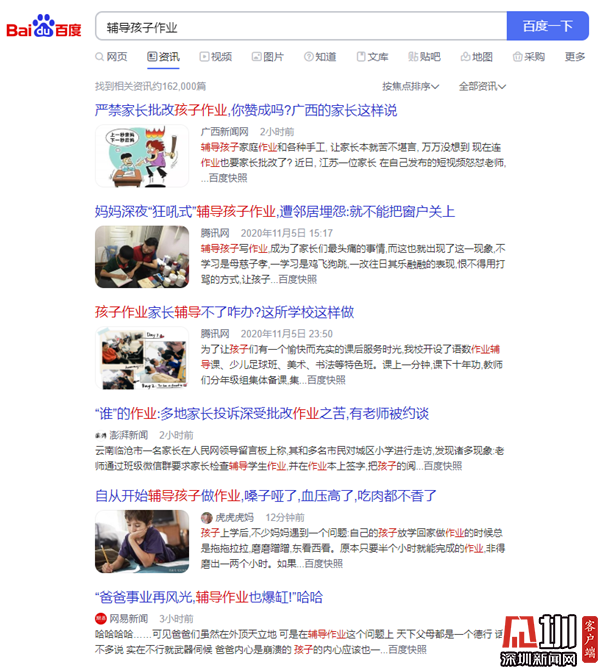 中國(guó)青少年研究中心家庭教育首席專家孫云曉介紹,全國(guó)婦聯(lián)的一項(xiàng)調(diào)查顯示,40%以上的家長(zhǎng)覺(jué)得無(wú)力輔導(dǎo)孩子作業(yè)。家長(zhǎng)們對(duì)此有多愁苦?百度搜索“輔導(dǎo)孩子作業(yè)”的資訊,彈出16.2萬(wàn)篇文章,大部分是關(guān)于家長(zhǎng)各種吐槽?!蹲鳂I(yè)把孩子難哭了,輔導(dǎo)作業(yè)把媽媽氣哭了,網(wǎng)友:太真實(shí)了》、《“爸爸事業(yè)再風(fēng)光,輔導(dǎo)作業(yè)也爆缸!”》、《自從開(kāi)始輔導(dǎo)孩子做作業(yè),嗓子啞了,血壓高了,吃肉都不香了》……一篇篇文章的標(biāo)題,都是關(guān)于各位家長(zhǎng)輔導(dǎo)孩子時(shí)的滿肚子苦水。