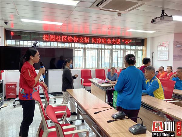 見圳客戶端·深圳新聞網(wǎng)11月25日訊(記者 劉嘉敏 通訊員 梁嘉麗 張亮亮)每年的11月25日也被稱為“國際消除家庭暴力日”,隨著時(shí)代的發(fā)展,大家對(duì)家暴的認(rèn)知,不只是普遍認(rèn)知的身體虐待,更多的是關(guān)注,情感的冷遇和言語的辱罵所帶來的傷害。怎樣才是對(duì)待親人的合適方式?學(xué)會(huì)向家庭暴力說“不”,社工給您支招。11月24日下午,在深圳羅湖區(qū)清水河街道梅園社區(qū)黨群服務(wù)中心開展了一場“反家暴”宣講活動(dòng),預(yù)防和制止家庭暴力,保護(hù)家庭成員的合法權(quán)益。