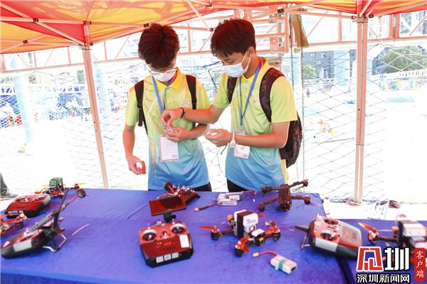 在2019年首屆活動基礎(chǔ)上,本屆賽事堅持學(xué)生全身心發(fā)展理念,以學(xué)生“所見、所感、所思、所想、所用”設(shè)5大比賽項目:無人機(jī)短片拍攝賽,25支隊伍以“我的學(xué)?!睘橹黝},使用無人機(jī)將自己所見的學(xué)校校風(fēng)校貌拍攝下來,制作成短視頻作品并解說,宣傳推廣學(xué)??萍汲晒粺o人機(jī)任務(wù)挑戰(zhàn)賽,設(shè)FPV競速賽和一目視競速賽,有23支隊伍參賽,每支隊伍5名選手,合力對無人機(jī)進(jìn)行改裝完成比賽,由操控選手通過第一視角顯示屏或眼鏡,直接感受無人機(jī)攜帶載重盒極速飛行的情況,完成各項任務(wù);“逐夢大灣區(qū)”無人機(jī)程序任務(wù)賽,24支隊伍參加,每支隊伍都要認(rèn)真思考、充分考慮,通過程序設(shè)計合理飛行線路,確保無人機(jī)按照指令順利飛達(dá)目的地;無人機(jī)科創(chuàng)嘉年華競賽,96支隊伍,是最多選手參加的比賽,他們充分發(fā)揮想象力,通過繪畫、制作實(shí)物等形式,將心中的無人機(jī)和粵港澳大灣區(qū)表現(xiàn)出來;無人機(jī)智能物聯(lián)賽,20支隊伍的選手正熟練地使用無人機(jī)完成物聯(lián)任務(wù),將無人機(jī)真正融入到生活中。