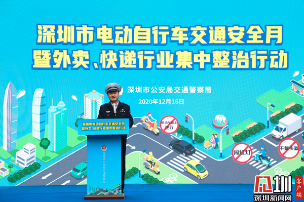 見圳客戶端·深圳新聞網(wǎng)12月16日訊(記者 郭含笑 通訊員 劉明)12月16日下午,深圳交警在羅湖區(qū)東門文化廣場舉行深圳市電動自行車交通安全月暨外賣、快遞行業(yè)集中整治行動啟動儀式?,F(xiàn)場邀請全市外賣、快遞企業(yè)代表參加啟動儀式。深圳市交警局局長徐煒、深圳市交警局副局長馮新毅及相關領導班子出席了啟動儀式。