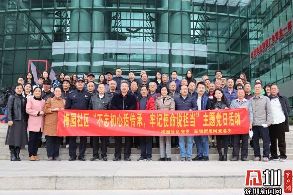 見圳客戶端·深圳新聞網(wǎng)12月18日訊(記者 彭桂紅 劉晨 通訊員 陳秋珊 紀(jì)楚苗)12月17日下午,深圳市羅湖區(qū)清水河街道梅園社區(qū)黨委組織社區(qū)各黨支部書記、老年人協(xié)會黨支部黨員一行30余人,來到深圳報(bào)業(yè)集團(tuán)參觀交流黨建工作。自2020年8月至2021年底,深圳新聞網(wǎng)黨總支部掛點(diǎn)聯(lián)系羅湖區(qū)清水河街道梅園社區(qū),雙方結(jié)對共建,當(dāng)天,雙方在深圳報(bào)業(yè)集團(tuán)開展了一場“不忘初心話傳承,牢記使命說擔(dān)當(dāng)”主題黨日活動。市紀(jì)委監(jiān)委駐報(bào)業(yè)集團(tuán)紀(jì)檢監(jiān)察組組長、報(bào)業(yè)集團(tuán)黨組成員陳鵬出席活動。