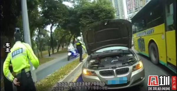 見圳客戶端·深圳新聞網(wǎng)1月21日訊(記者 郭含笑 通訊員 黃佳佳 陳慧琪)1月19日晚,羅湖交警筍崗中隊鐵騎隊員彭鉞崴、陳培斌巡邏至深圳市羅湖區(qū)泥崗路輔道轉(zhuǎn)北環(huán)大道路段時,發(fā)現(xiàn)一輛煙霧彌漫著的小車突發(fā)故障,停放在路邊。站在一旁的車主神情十分慌亂,兩名鐵騎隊員立即上前了解情況,經(jīng)與該車女車主溝通,車輛水箱爆開防凍冷卻液外滲,導致無法正常行駛,被迫停放在此處。