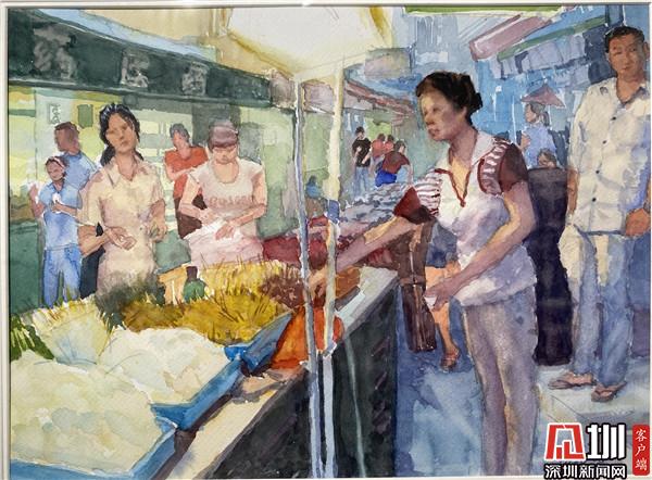 據(jù)了解,《東門這地方》展覽以東門景觀為題材,創(chuàng)作者中不乏地地道道的東門原住民,通過藝術(shù)畫作的形式詮釋和表達(dá)東門的歷史文化。出生在東門,求學(xué)也在東門的張躍侖在接受記者采訪時(shí)表示,因?yàn)樽约壕褪峭辽灵L(zhǎng)的東門人,所以對(duì)東門的感情深厚,希望通過類似活動(dòng),來實(shí)現(xiàn)“本土文化的本土表達(dá)”,也希望能引起許多老深圳人對(duì)東門的回憶,讓更多人認(rèn)識(shí)東門的格局。其中他提到,此次畫展的亮點(diǎn)增加了不少畫家在去年疫情的時(shí)所作的作品,以自己的所見所聞,表達(dá)對(duì)東門生活的新認(rèn)知。