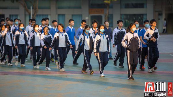 翠園中學的同學們迎著晨光參加開學典禮。