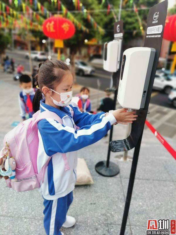 松泉實驗小學,孩子們主動洗手消毒。