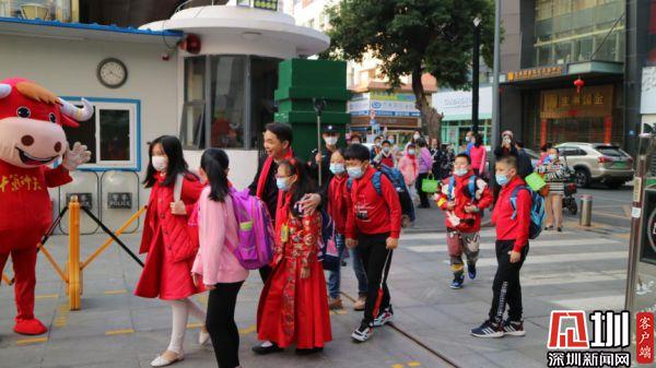 羅湖外語實驗學校的開學典禮上,全校師生戴著紅色福字口罩參加了活動,學校還給學生發(fā)放了開學大禮包。