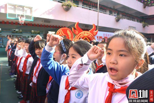 湖貝小學全體學生高昂宣誓,宣告新春奮發(fā)向上的心愿。