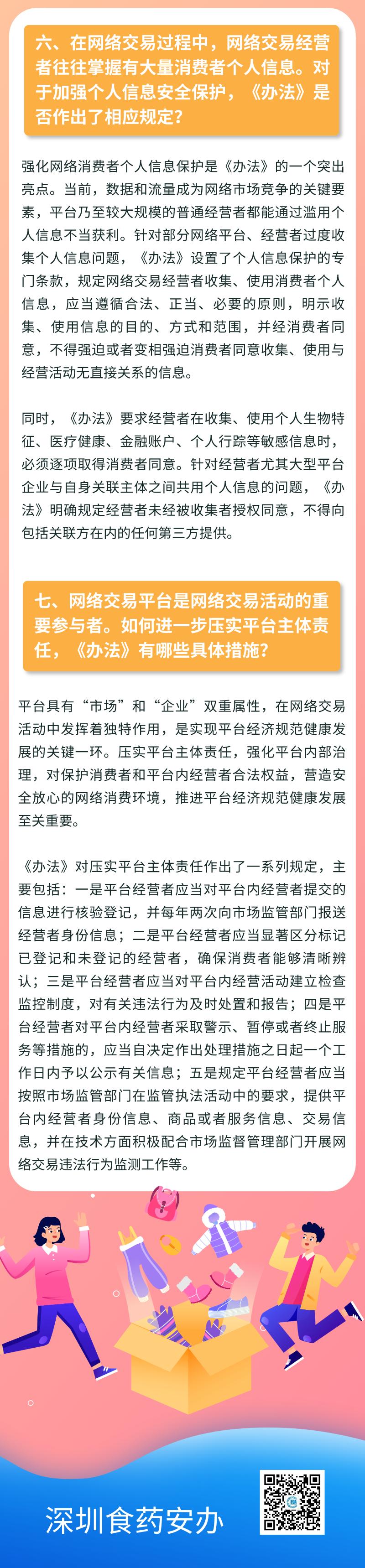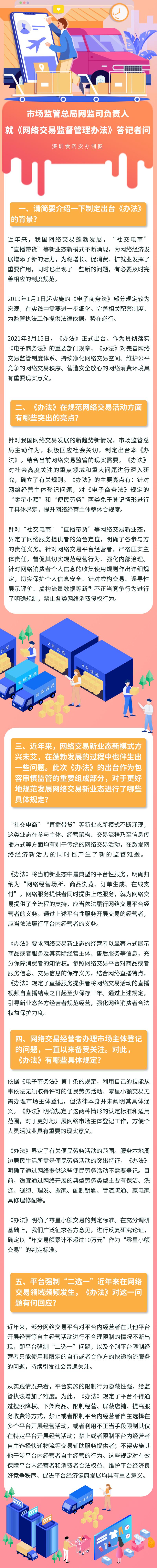 《辦法》明確了網(wǎng)絡(luò)交易監(jiān)管堅(jiān)持鼓勵(lì)創(chuàng)新、包容審慎、嚴(yán)守底線、線上線下一體化監(jiān)管原則,提出推動(dòng)完善多元參與、有效協(xié)同、規(guī)范有序的網(wǎng)絡(luò)交易市場(chǎng)治理體系,對(duì)網(wǎng)絡(luò)經(jīng)營(yíng)主體登記、新業(yè)態(tài)監(jiān)管、平臺(tái)經(jīng)營(yíng)者主體責(zé)任、消費(fèi)者權(quán)益保護(hù)、個(gè)人信息保護(hù)等重點(diǎn)問題作出了明確規(guī)定。
