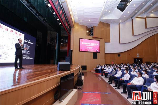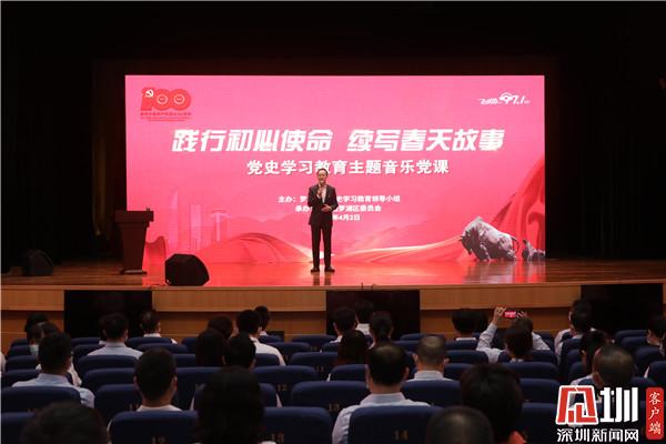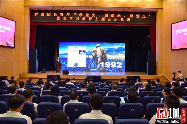 見(jiàn)圳客戶端·深圳新聞網(wǎng)4月2日訊(記者 李慧 通訊員 王舒琪)4月1日下午,羅湖青年相聚一堂,共同參加一場(chǎng)別開(kāi)生面的沉浸式“學(xué)黨史、強(qiáng)信念、跟黨走”黨史學(xué)習(xí)教育主題音樂(lè)黨課?;顒?dòng)特邀了深圳廣電集團(tuán)廣播中心黨委委員劉洋用“藝術(shù)+黨史”的全新形式作主題講解。羅湖區(qū)委書記羅育德,區(qū)領(lǐng)導(dǎo)呂漫妮、李志榮、陳龍興、羅安娜,團(tuán)市委副書記賴鋒等出席了活動(dòng)。