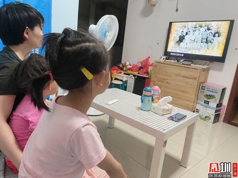 中醫(yī)院職工在家與孩子共同觀看紀(jì)錄片。