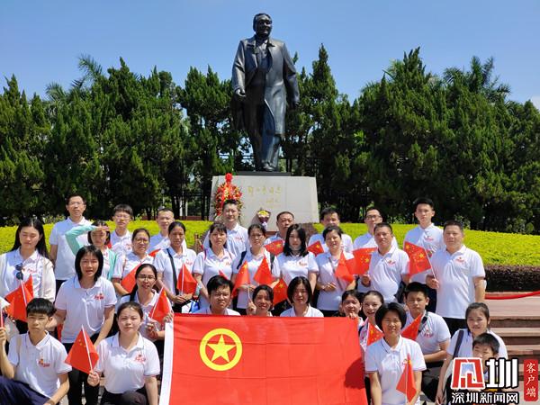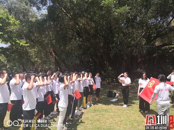 在鄧小平銅像廣場(chǎng),大家精神抖擻、意氣風(fēng)發(fā),手持飄揚(yáng)的旗幟,再一次舉起右手,莊嚴(yán)宣誓。