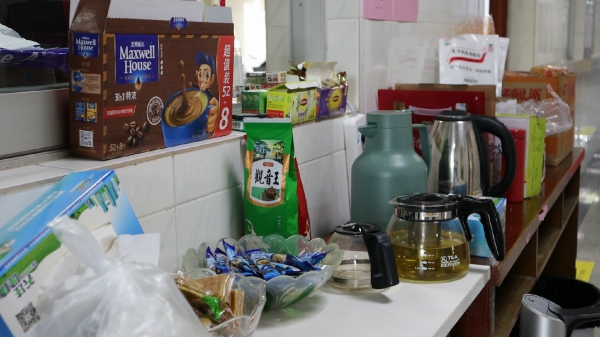 在不大的辦公室,來自各個地區(qū)的疾控人員坐在一起,聚精會神的研究手中的數(shù)據(jù),與同事核對信息準(zhǔn)確性,不時有工作人員撥出電話、接到電話,神情專注地聆聽聽筒后的每一個數(shù)據(jù)。在門外,一條長桌上擺滿了各種零食、飲品,一盒潤喉糖已經(jīng)見底,一箱功能飲料也已經(jīng)所剩無幾。