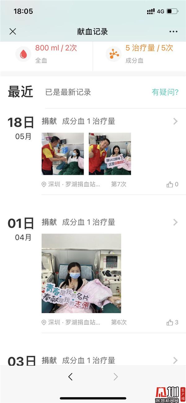 “工作之余有獻血的習慣,最近的一次是4月1日和5月18日。”