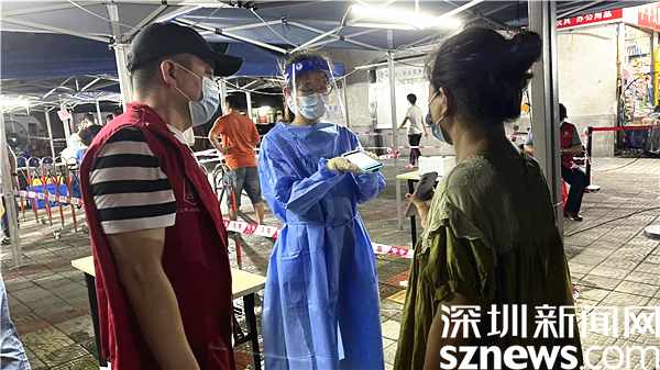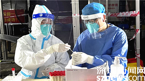 連日來(lái),在羅湖區(qū)各大核酸檢測(cè)點(diǎn),醫(yī)護(hù)人員頂著烈日驕陽(yáng),身著密閉防護(hù)服,戴著隔離面罩,全副武裝奮戰(zhàn)在一線為市民進(jìn)行核酸檢測(cè)。