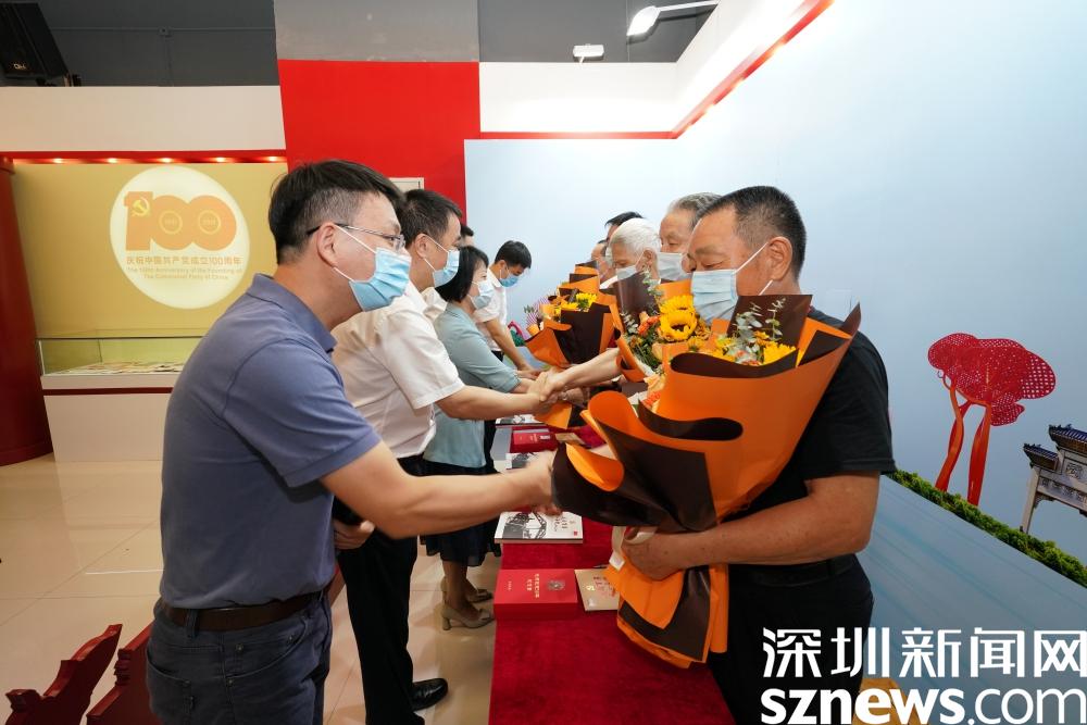 羅湖區(qū)委常委、宣傳部部長呂漫妮,羅湖區(qū)委組織部部務(wù)委員、人才工作局局長曹雙璽,羅湖區(qū)委宣傳部副部長、區(qū)文明辦主任張華嘉,深圳報業(yè)集團副總經(jīng)理朱永峰,清水河街道黨工委書記魏剛,清水河街道黨工委副書記劉曉春等共同為展覽揭幕。部分老兵代表出席了本次活動, 并向嘉賓和學(xué)生代表簽名送書。開幕式后,羅湖區(qū)、清水河街道和深圳報業(yè)集團領(lǐng)導(dǎo)為街道 " 光榮在黨 50 年 " 紀(jì)念章獲得者代表黨員頒發(fā)獎?wù)拢瑸榻值擂k " 兩優(yōu)一先 " 榮譽獲得者代表頒獎。