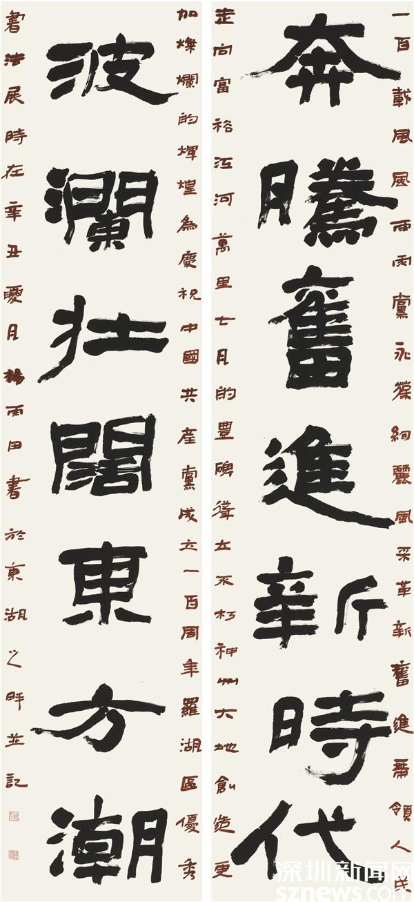 梁宇對此次展覽表示充分肯定并表示,此次展覽,羅湖區(qū)以書法的形式來慶祝中國共產(chǎn)黨百年華誕,通過書法的形式來謳歌、體現(xiàn)黨的這一百年的光輝歷程。同時,書法家們通過各種書體來體現(xiàn)藝術(shù)家對黨的濃濃情感,也通過作品呈現(xiàn)出了聽黨話、跟黨走的一種精神面貌。