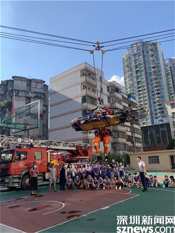讀特客戶端·深圳新聞網(wǎng)2021年9月24日訊(見習記者 鐘林 通訊員 魏文博)“哇,這好危險!”“以后一定要注意人身安全!”,在羅湖區(qū)未成年人關(guān)愛季消防體驗活動中的橫渡救援環(huán)節(jié),看著模擬被“救援”的學生安置在橫渡救援器材上騰空升起,學生們抹了一把汗,緊緊攥著小手對著消防員說道。9月24日下午,羅湖區(qū)文明辦、羅湖消防救援大隊和羅湖區(qū)婦聯(lián)聯(lián)合開展羅湖區(qū)未成年人關(guān)愛季開放月系列活動,組織深圳市翠北實驗小學學生走進羅湖消防救援大隊近距離接觸體驗消防生活,“零距離”學習消防知識。