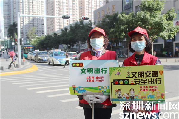 讀特客戶端·深圳新聞網(wǎng)2021年11月9日訊(記者 劉嘉敏 通訊員 楊紀歐)11月8日早晨,深圳明顯降溫,出行的市民紛紛穿上了厚衣御寒。身穿紅馬甲的義工,手舉“文明出行”的指示牌,在四面迎風的路口執(zhí)勤,勸導市民文明出行,營造安全有序暢通的交通環(huán)境,維護相互禮讓的文明社會風尚。他們不畏寒風,積極投身文明城市創(chuàng)建,踐行“奉獻、有愛、互助、進步”的志愿服務精神,讓志愿服務之火,點亮城市文明之光。他們是羅湖區(qū)桂園街道老圍社區(qū)創(chuàng)文小分隊的志愿者,同時,他們也是萬象城U站的義工。