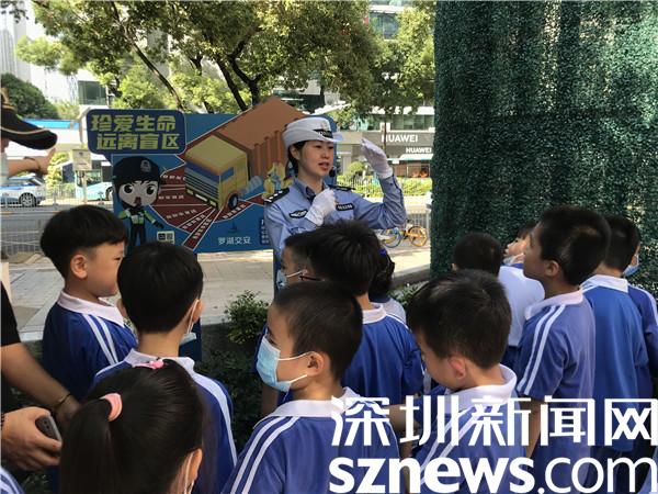 結(jié)束警營(yíng)的參觀,羅湖交警組織學(xué)生們前往東門(mén)社區(qū)交通安全主題公園開(kāi)展交通安全教育。在民警的引導(dǎo)下,同學(xué)們被趣味游戲所吸引,在模擬機(jī)動(dòng)車(chē)道玩起了“交通安全齊步走”,在交通標(biāo)識(shí)轉(zhuǎn)轉(zhuǎn)墻前認(rèn)識(shí)各類交通標(biāo)識(shí),在大車(chē)盲區(qū)警示等設(shè)施裝置中進(jìn)行沉浸式體驗(yàn)。