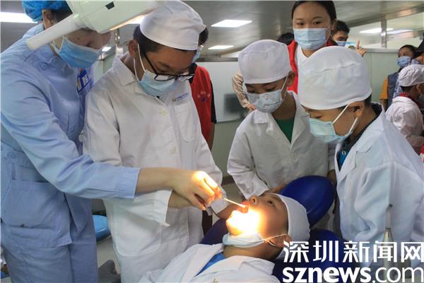培訓(xùn)結(jié)束,小朋友們穿上白大褂,戴上醫(yī)生帽,變身小牙醫(yī),走進(jìn)診室,拿起棉簽,為“病人”檢查牙齒。10個小朋友分成5組,互為“病人”和“醫(yī)生”。小“病人”躺在診床上,張大嘴等著檢查。小“牙醫(yī)”在牙科醫(yī)生的指導(dǎo)下,仔細(xì)觀察“病人”的口腔,了解什么是健康的牙齒,什么是出現(xiàn)了問題。陳信霏小朋友檢查完“病人”后,對哥哥說,“以后可要愛護(hù)牙齒了,每天早晚按時刷牙?!备绺缫颤c頭同意。