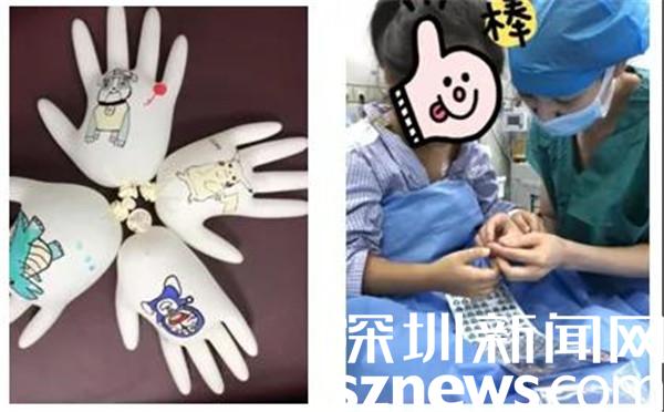 除了引進(jìn)玩具車,麻醉科手術(shù)室還同步上線了其他暖心舉措,在消毒手套上繪制患兒喜歡的卡通玩具、準(zhǔn)備符合院感要求的貼紙及小玩具......針對患兒術(shù)后復(fù)蘇觀察期,復(fù)蘇室的護(hù)士姐姐們還專門下載了動畫片放在iPad里,方便隨時(shí)觀看。
