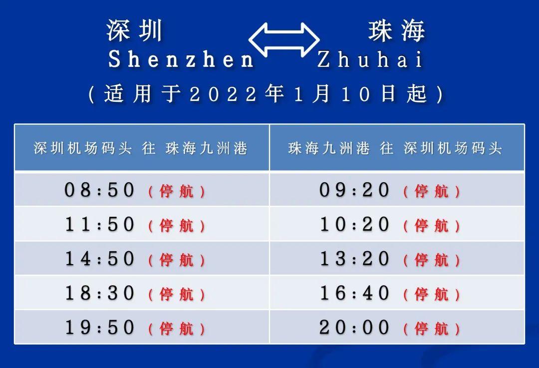 記者從深圳機場獲悉,1月10日起,深圳機場碼頭至珠海九洲港航線船班全部停航,復航時間另行通知。