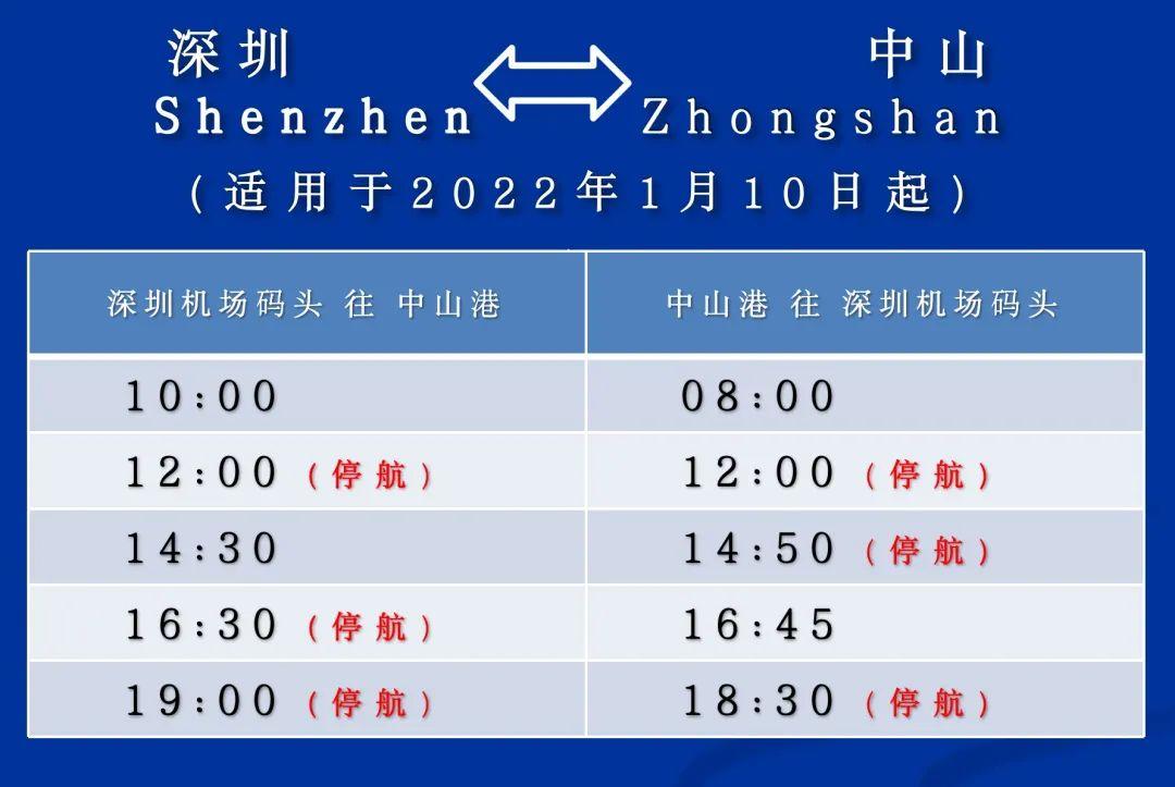 同時,1月10日起,深圳機場碼頭至中山港航線船班保留每日2進2出:10:00、14:30 深圳機場碼頭出發(fā)前往中山港;08:00、16:45 中山港出發(fā)前往深圳機場碼頭。