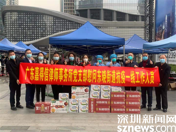 1月10日下午,深圳市人大代表、廣東嘉得信律師事務(wù)所主任閔齊雙來到獨(dú)樹社區(qū)IBC核酸檢測點(diǎn)慰問抗疫一線工作人員,送上牛奶、功能特飲及水果等慰問品,向奮戰(zhàn)在一線人員致敬和感謝,表示將全力做好一線人員關(guān)愛和后勤保障工作,齊心協(xié)力打贏這場硬仗。